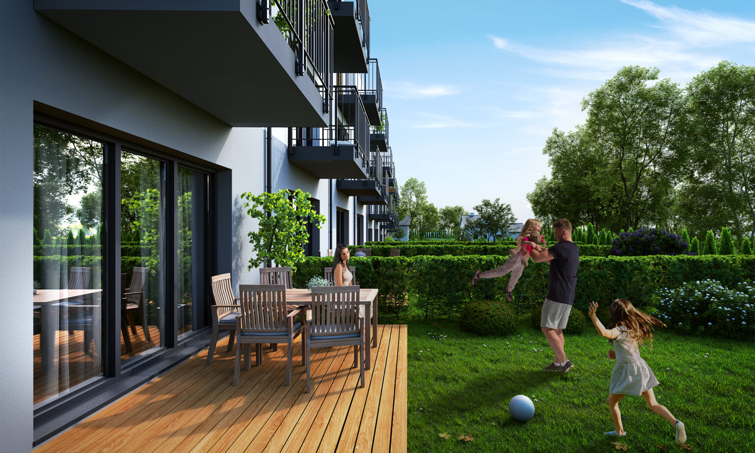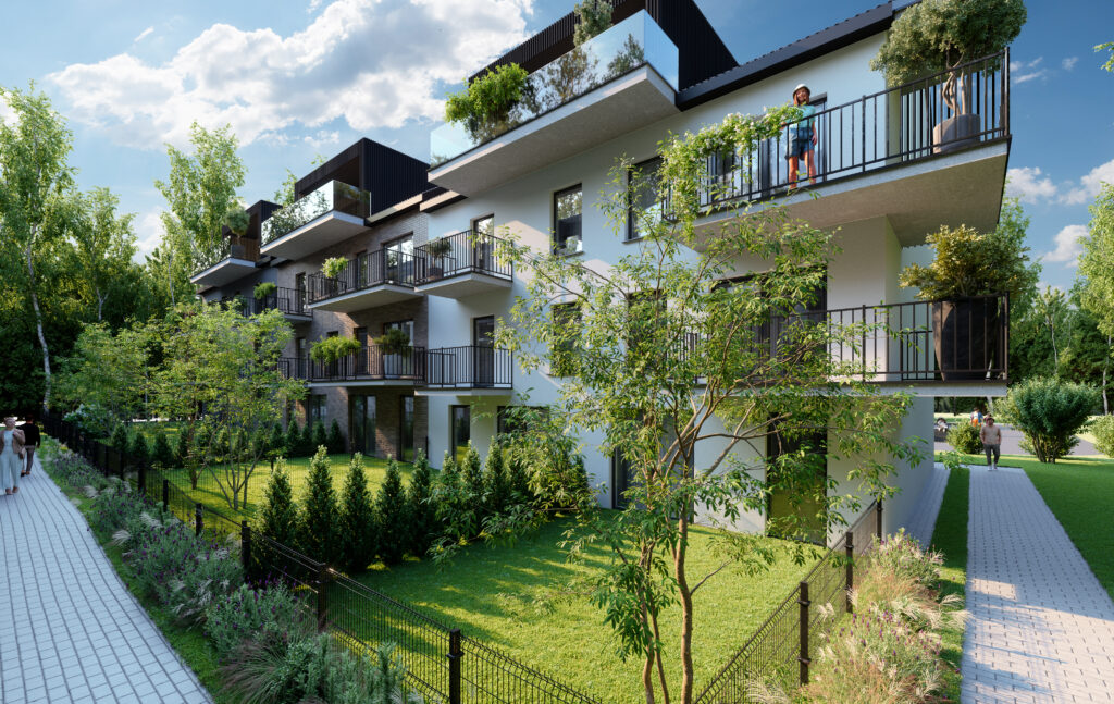 Harmonia Dębskiego to kameralne osiedle sześciu budynków w niskiej zabudowie, które łączy nowoczesną estetykę z funkcjonalnością. Jasne elewacje z dekoracyjnymi detalami i duże przeszklenia nadają całości elegancji i lekkości, a układ zabudowy sprzyja prywatności mieszkańców. Otoczenie pełne drzew tworzy przyjazny klimat i naturalną barierę od miejskiego zgiełku. To inwestycja, w której przemyślany projekt architektoniczny spotyka się z komfortem codziennego życia – idealny wybór dla osób ceniących spokój, ale nie chcących rezygnować z atutów Krakowa.